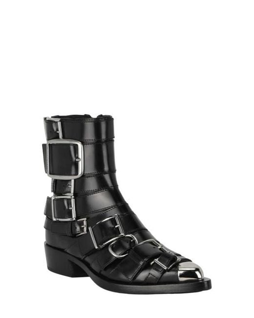 Bring a punk-rock attitude to semiformal ensembles with this calfksin bootie brought to you by the Italian house known for combining luxurious materials with a bit of an edge design-wise. 1/2" platform Side zip closure Leather upper, lining and sole Made in Italy Designer Shoes<br type="_moz"> Color: black