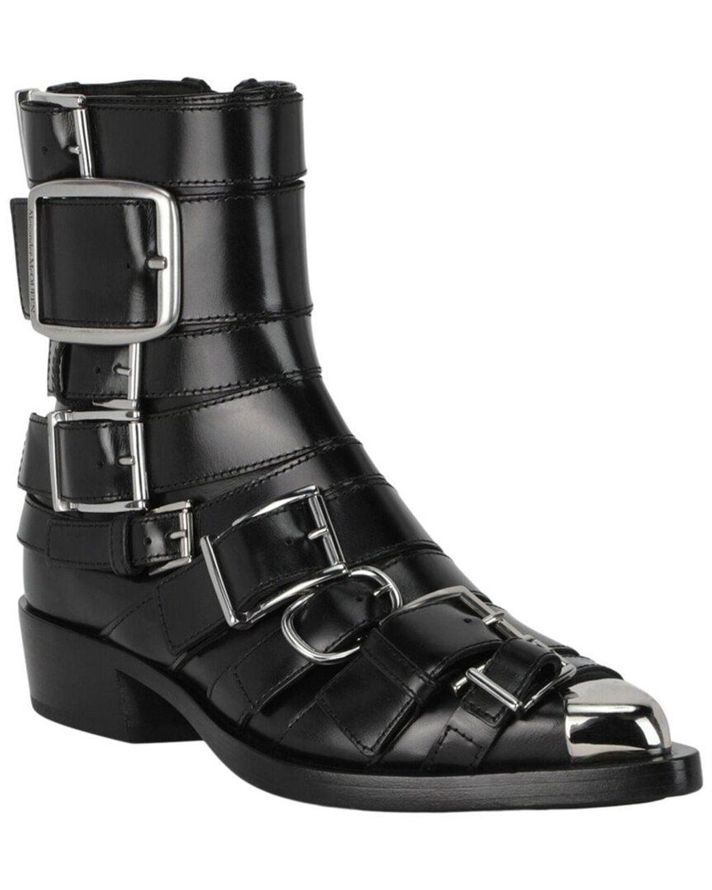 About The Brand: Romantic And Rebellious British Couture. Please Note: Size Selections Are European. For Us Conversions, Please Reference Size Chart. Made In Italy Strappy Punk Leather Bootie In Black Silver Calfskin Leather And Silver-Tone Hardware With Side Zip Closure; Pointed Toe; Ankle Length; Stacked Heel; Smooth Finish; Strappy Buckle Design On The Vamp; True To Size; Strappy Buckle Design; Dipped Silver-Tone Toe Zipper Closure Smooth Leather Sole 0.50In Platform 6.50In Shaft 12.00In Boot Circumference Please Note: All Measurements Are Approximate And Were Taken From A Size ; Slight Variations May Occur. Our Products Are 100% Genuine. In Some Cases We Purchase Merchandise From Trusted Independent Suppliers And Not Directly From The Brand Owner. In All Cases We Stand By The Authenticity Of Every Product Sold On Our Site. Color: black