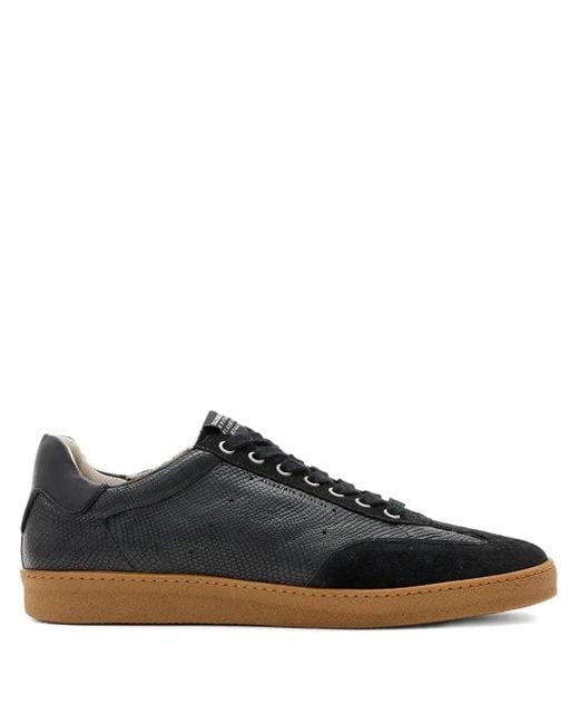 Black front lace-up fastening padded ankle flat rubber sole paneled design Size: 44. Gender: Male. Material:Fabric/Calf Leather/Rubber/Calf Suede. Color: black