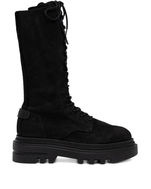Black lace-up fastening platform sole ridged sole round toe Size: 36. Gender: Female. Material:Calf Leather/Goat Skin/Polyethylene vinyl acetate (PEVA). Color: black