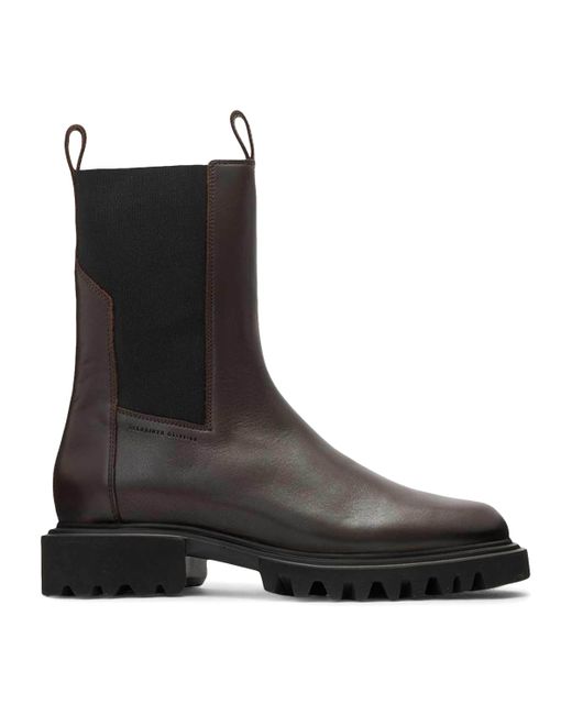 The Hallie boots by AllSaints take the classic Chelsea silhouette and push it into a sharper, more commanding shape. With a slightly elongated profile and a thick sole, they offer both presence and polish, balancing sleek refinement with the brand’s signature edge. Color: black