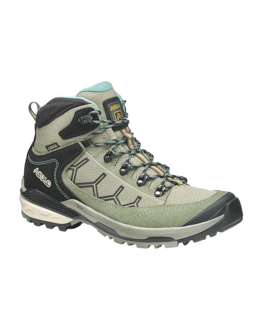 Upgrade your shoe game with these stylish lace-up boots, designed to merge sophistication and comfort. You'll be reaching for these shoes season after season.Introducing the Women's Falcon Evo Gv Boots by Asolo, a perfect choice for hiking with a modern athleisure touch. These lace-up boots in Dry Weeds/Aqua Green feature a sturdy rubber construction, designed for durability and comfort in the fall season. With a classic round toe shape, they're ideal for women's adventurous spirit. Proudly craf Color: green