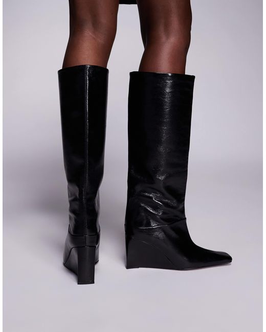 Shoes by ASOS DESIGN Knee length Wide cuff Slim toe Wedge heel. Color: black