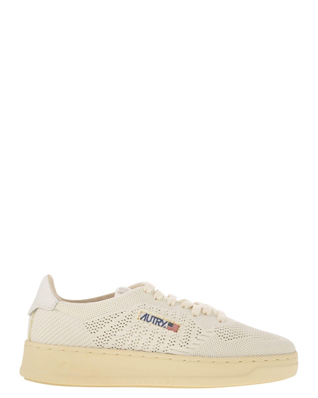 Autry Medalist Easeknit is part of Autry's new capsule collection. A model inspired by the shape of the Autry Medalist, reinterpreted with an ivory-coloured knit upper, worked in different three-dimensional textures to wrap and support the foot. The Autry Easeknit fuses the elegant design of the Medalist Sneakers with a style that is fresh and original. - Ivory-coloured perforated fabric upper - Perforations on the toe and sides for breathability - Flat cotton laces - Textile tongue with foam padding and matching stitched logo label - Padded collar - Ivory-coloured leather heel with embossed logo - Leather and fabric lining - Logo-embossed leather insole, raised 2 cm - Tone-matched logoed rubber sole - Case included DESIGNER ID: EKLWKN08SpecificationValueYear2025SeasonCarry OverMaterialsUpper: 100% Perforated Fabric Lining: Leather and Fabric Sole: 100% RubberColorIVORYColor CodeKN08Made InIndonesiaMeasuresSole height: 2.5-3.5 cmGenderWomenSize FormatIT Color: natural