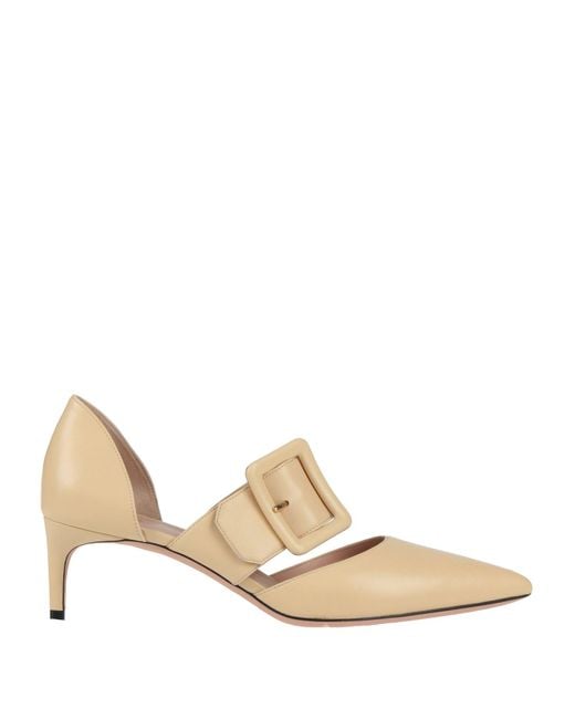 Mary jane pumps, leather, solid color, buckle, leather lining, elasticized inserts, pointed toe, stiletto heel, leather sole, contains non-textile parts of animal origin , Color: Beige , Size: 5.5