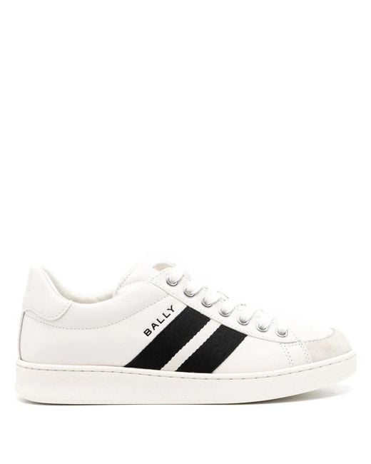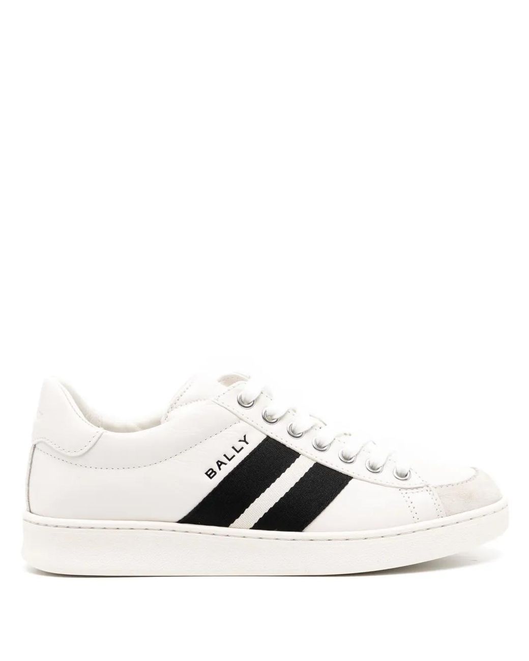 White front lace-up fastening round toe flat rubber sole logo print to the side Size: 38. Gender: Female. Material:Leather. Color: white