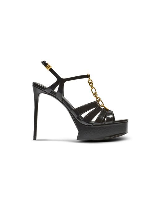 Sync high-heeled platform sandals in patent lambskinAnkle strap and front embellishmentRound toeLeather platform soleStiletto heelHeel height: 12.5 cmPlatform height: 3 cmMain material: 100% lambskinMade in ItalyItem: GN1UH198LNPX