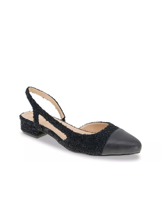 Effortlessly chic and comfortable, the Tillie flat from BCBGeneration is a must-have in your shoe collection. Boasting a dual-tone upper with a slingback strap, round pointy toe and a low block heel, this slip-on flat instantly gives a style boost to your refined look. The padded footbed offers excellent underfoot support and ensures lasting comfort throughout your day. Color: black