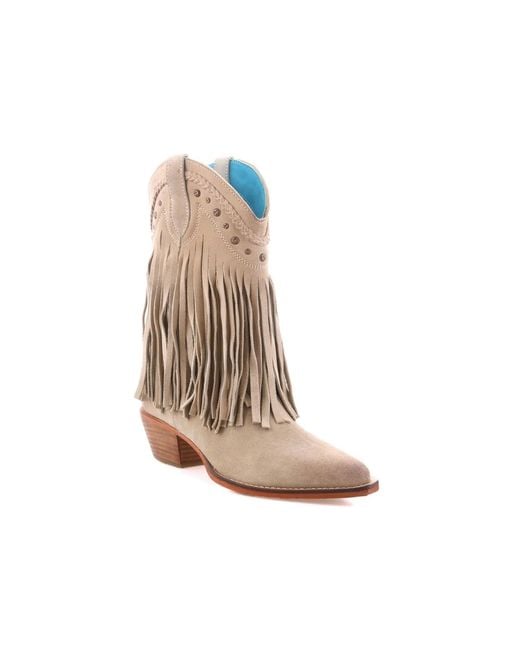 Redefine your fashion with the Bed Stu Setup boot. Crafted from premium leather, this boot features long fringes cascading from the upper shaft, a braided band along the top, and metallic studs for a standout western-inspired look. The pointed toe adds dynamic flair. The rubber outsole ensures confident traction with every step. Click here for Boot Measuring Guide. Color: brown