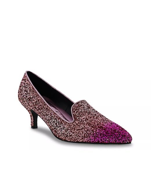 Be the dazzler at the party with the Bellini Bobcat pump. All-over glittery accents give a shimmery effect to thhis pump, which is slightly lifted by a kitten heel. Color: purple