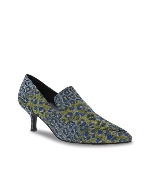 Staying in vogue comes easy with the fascinating Bellini Brim loafer. This heeled penny loafer sports wily leopard prints, taking your chic looks to a whole new level. A pointed toe with moc stitches elegantly completes the look. Color: blue