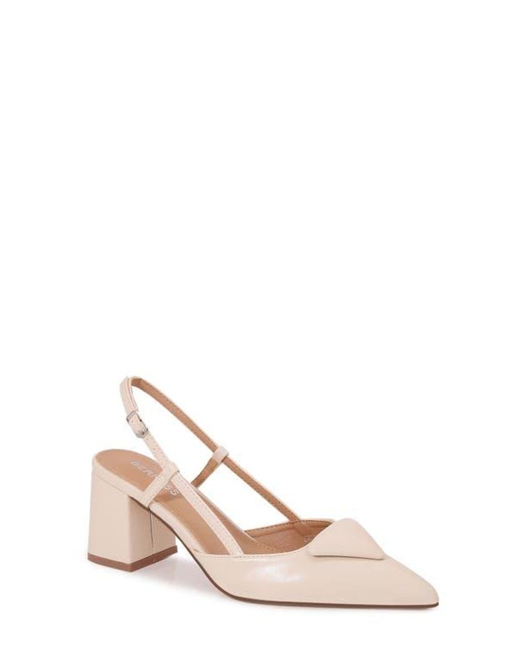 A pointy toe and block heel balance a sleek pump fashioned with a slingback strap for a secure fit. 2" heel Adjustable slingback strap with buckle closure Synthetic upper, lining and sole Imported Color: pink