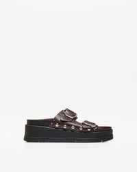 Go to ASOSShoes by Bershka Ankle strap Pin-buckle fastening Buckle toe straps Open toe Flared heel. Polyurethane. Color: brown