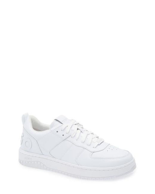 Paneled leather and a perforated toe enhance the sporty appeal of this leather low-top sneaker featuring signature branding at the heel and set on a thick sole. Lace-up style Cushioned insole Imported Hugo Boss/BOSS/HUGO has received the Fair Labor Association accreditation, which signifies that the company has effective systems and procedures in place to successfully uphold fair labor standards throughout its supply chains, including strategies and tools to address and improve working conditions Color: white