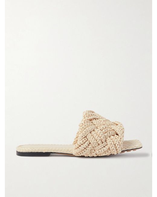 Bottega Veneta's slides are made from braided leather strips that are woven using the signature intrecciato technique. They've been made in Italy in a square-toe silhouette with thick straps and slight heels, so you can wear them comfortably all day. The neutral hue makes for endless styling options. Color: natural