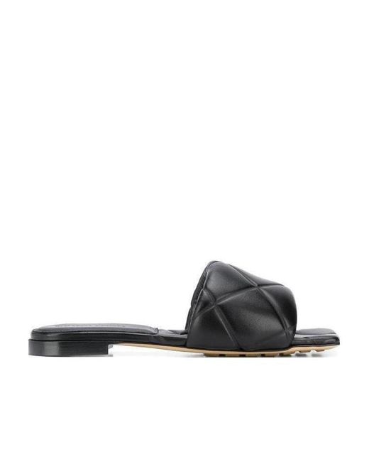 Bv Lido Flat Mules In Intrecciato Leather - Black