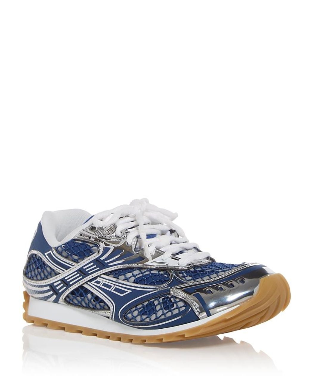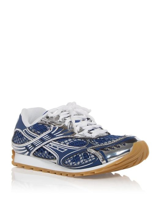 Bottega Veneta's Orbit sneakers are crafted in a lightweight technical mesh with a graphic overlay design. The rubber outsole provides traction and comfort for an active lifestyle. Color: blue