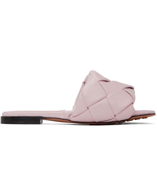 Intrecciatio-woven nappa lambskin flat sandals in pink. · Open square toe · Logo-embossed footbed · Stacked leather midsole · Leather outsole Supplier color: Cameo