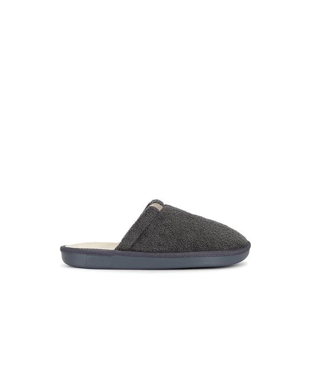 Brunch Essential in Gray. - size M 7 / W 8 (also in M 9 / W 10) Brunch Essential in Gray. - size M 7 / W 8 (also in M 9 / W 10) French terry upper and rubber sole. Slip on styling. French terry footbed. BRUR-MZ42. ES1TE1GRM. Color: black