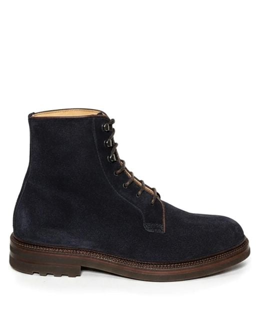 Blue suede leather lace-up fastening round toe flat sole Size: 42. Gender: Male. Material:Calf Leather/Rubber/Calf Suede.