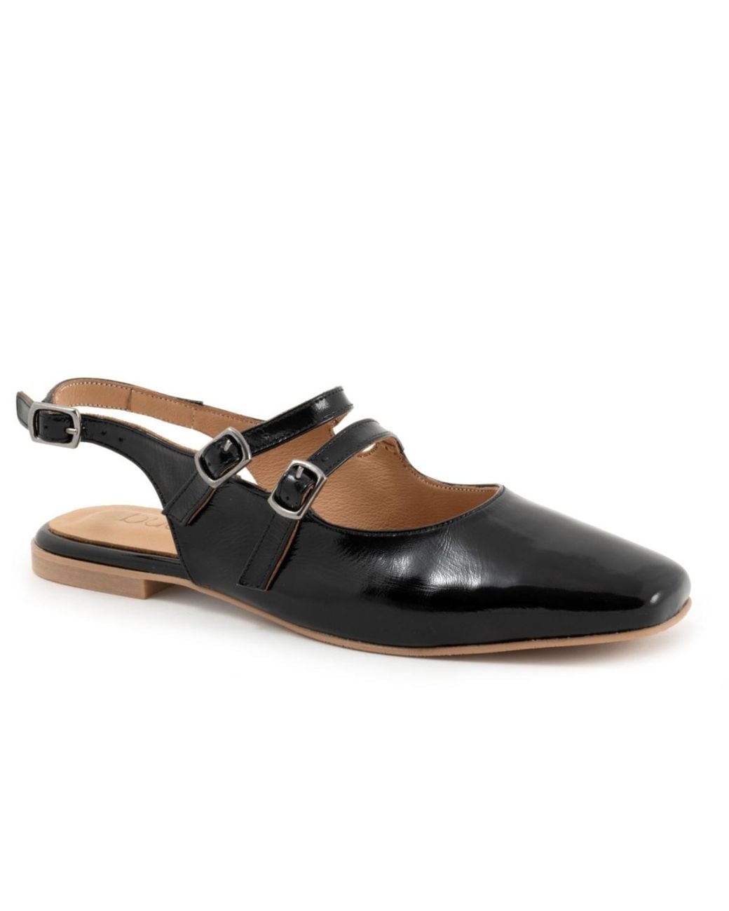 Step into sophistication with the Bueno Estella Slingback Flat. Crafted from premium leather, this elegant flat features a chic square toe and two top buckles for a touch of classic charm. The adjustable buckles and elastic goring ensure a perfect fit, while the cushioned footbed offers exceptional comfort. Leather. Color: black