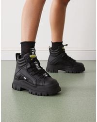 Go to ASOSShoes by Buffalo Embrace the elements Faux-fur lining Lace-up fastening Padded design D-ring rivets Signature Buffalo branding Round toe Memory foam sole for comfort Chunky sole Textured tread. Polyester/Rubber/Polyester/Polyurethane. Color: black