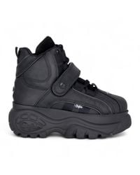 Go to ShopSimonThe Gospher Hike Lo Women’s Black Platform Chunky Ankle Boots by Buffalo offer a bold fusion of edgy design and everyday wearability. Crafted from smooth black vegan nappa, these ankle boots feature a