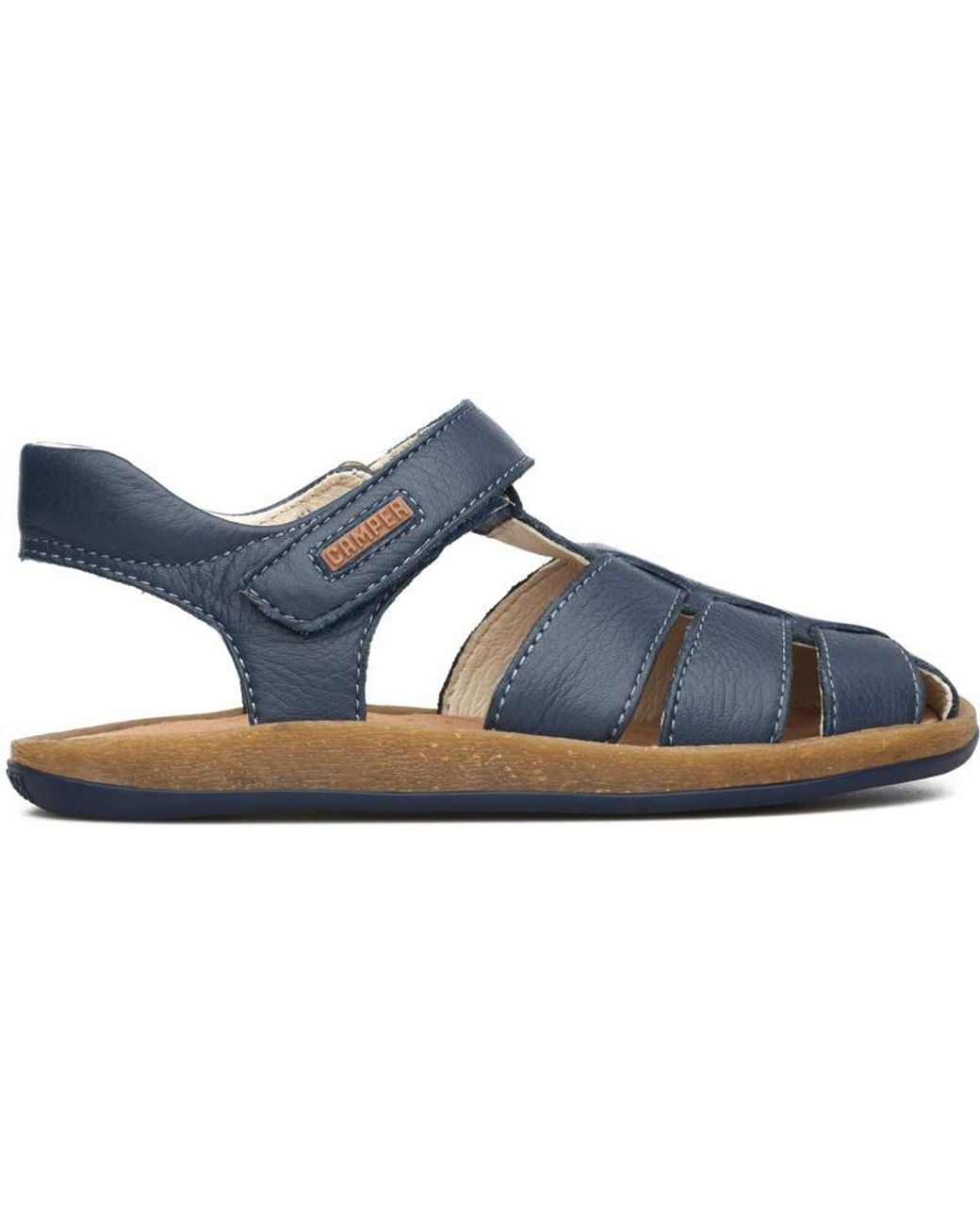 CAMPER - The bright, unaffected simplicity of this sandal is matched by the optimism of its colors, the softness of its anatomical insole and the good intentions of its outsole, made of recycled rubber to help kids travel the earth with ease... and do the earth a favor into the bargain. Flexible, long-lasting, non-slip two-tone rubber outsole. Color: blue