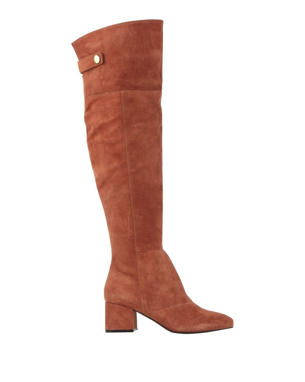 Over-the-knee boots, suede, solid color, no appliqués, leather lining, zipper fastening, round toe, square heel, covered heel, rubber sole, contains non-textile parts of animal origin , Color: Rust , Size: 7