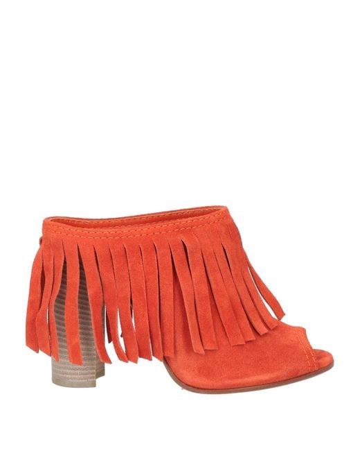 Sandals, suede, fringes, solid color with appliqués, leather lining, round toe, geometric heel, leather sole, contains non-textile parts of animal origin , Color: Tomato red , Size: 6