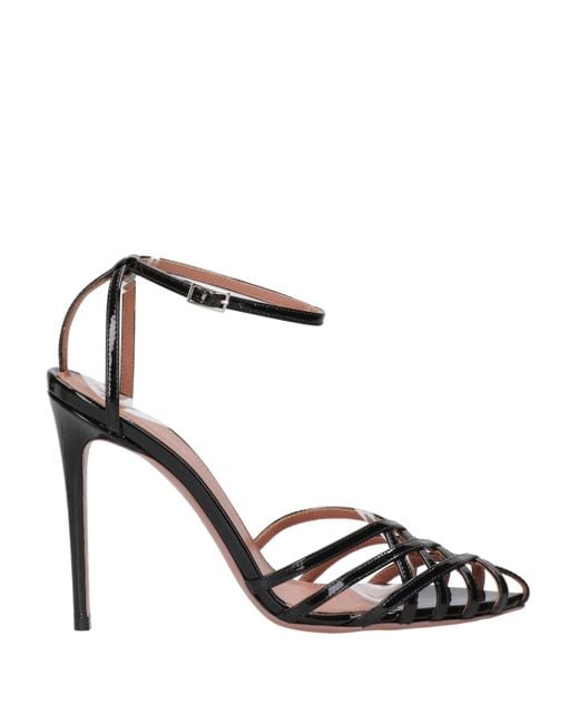 - Patent calfskin leather - Upper with perforated weave pattern - Pointed toe - Adjustable ankle strap with micro metal buckle - Leather insole - Leather sole with non-slip grip - Covered stiletto heel - Heel height 10.5cm - Made in Italy Color: black