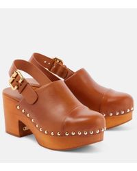 Go to ChloeThis Jeannette wedge clog reintroduces an authentic Chloé shape, pairing a shiny cowhide upper with a chunky heeled wooden structure. Polished hardware complements the leather and wood with gold-tone studs along the upper