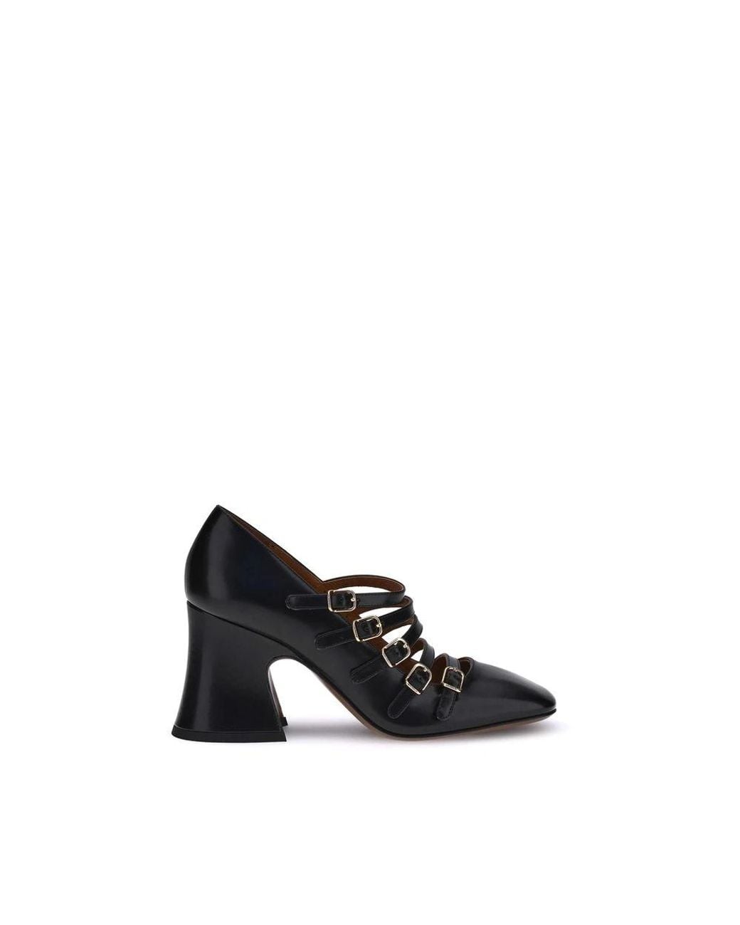 Elevate your style with the Janis Pumps by Chloé. Crafted from shiny calfskin, these pumps feature a bell-shaped block heel and slightly squared toe. The adjustable straps with gold buckles engraved with the Chloé logo add a refined touch. Made in Italy. Sku: Chc 25A11Col_001. Color: black
