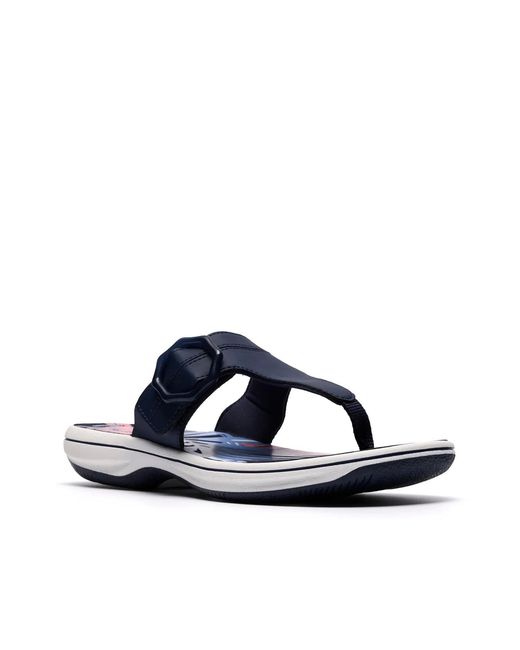 Step into easygoing style with the Breeze Cove sandal from Clarks, designed to carry you through your day with a sleek, slip-on silhouette and a subtle hook and loop strap for a personalized fit. This sandal s round open toe and modest molded heel create a laid-back yet polished vibe that transitions effortlessly from casual errands to relaxed evenings. Color: blue