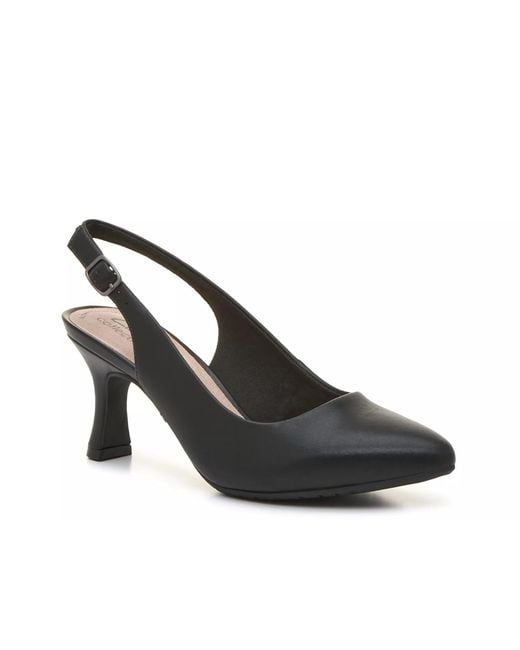 Stay sophisticated and stylish in the Kataleyna Step pumps from Clarks! This leather slingback features a sleek pointed toe, complete with an Ultimate Comfort footbed for extra support. Color: black