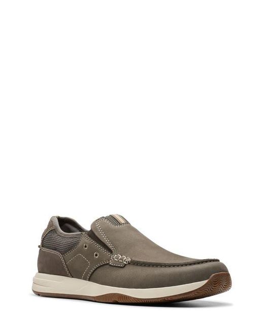 A slip-resistant tread keeps you grounded in all conditions in this lightweight slip-on sneaker with handsome stitch details and embossed logo branding. Leather upper/textile lining/synthetic sole Imported Color: brown
