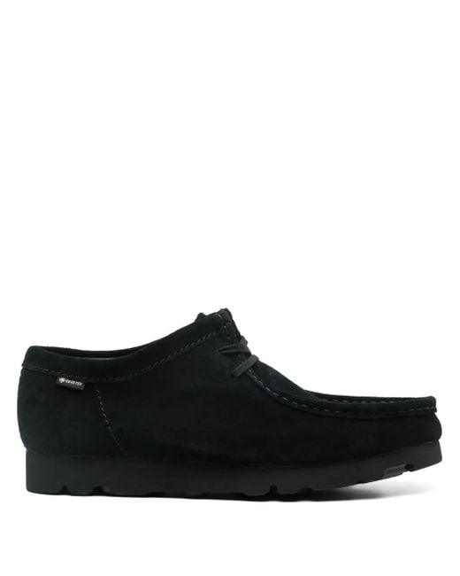 Black calf suede waterproof GORE-TEX® material front lace-up fastening raised seam detail square toe branded insole Vibram® sole rubber sole Size: 10.5. Gender: Male. Material:Calf Suede/Fabric/Rubber. Color: black