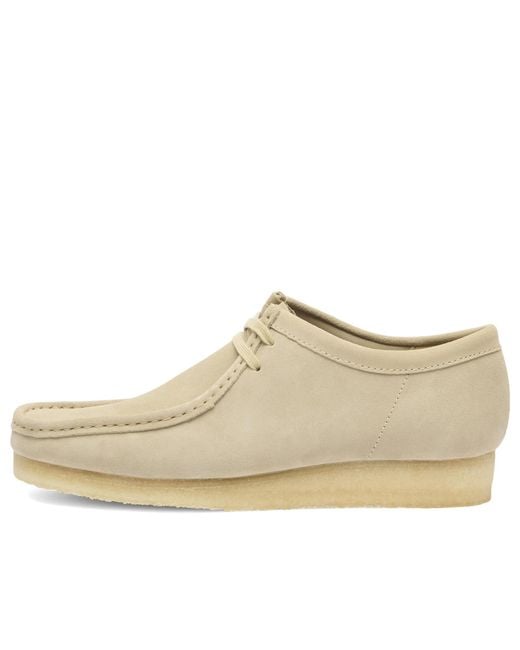 Clarks Originals Wallabee shoes have held icon status for decades, barely changing yet always relevant. This take on the Originals Clarks Wallabee brings that easy moccasin feel, premium maple suede and the instantly recognisable crepe sole. A true cult classic, the Clarks Wallabee suede continues to set the benchmark — often imitated, never matched. Suede Upper, Breathable Embossed Leather Lining, 2 Branded Fobs, EVA Midsole, Natural Rubber Crepe Sole, Style Code: 26188318-NEU, Shop All Men's Clarks Originals Shoes & Boots, Shop All Men's Shoes. Clarks Originals Men's Wallabee in Maple Suede, Size UK 10 Color: natural