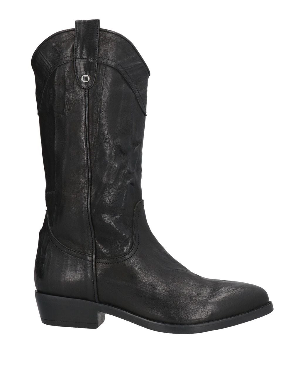 Cowboy boots, leather, no appliqués, solid color, leather lining, pointed toe, cuban heel, rubber sole, contains non-textile parts of animal origin , Color: Black , Size: 6