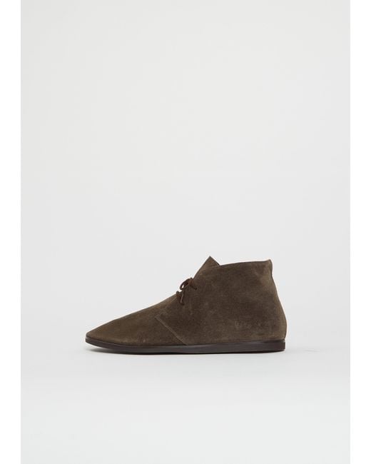 Common Projects. Brown suede flat boot with a lace-up front and two sets of eyelets in soft suede leather. Features a round toe and. A thin rubber sole. Finished s. Ignature engraved style numbers on outer heel. Sizing: European (37-41). Upper: 100% Suede Leather. Sole: 100% Rubber. Made in Italy. Color: white