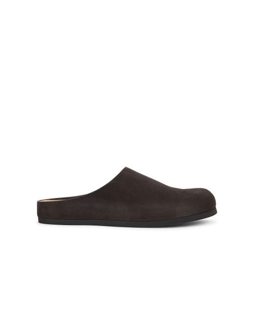 Common Projects Clog in Brown Suede upper with rubber sole. Made in Italy. Slip-on styling. Contoured suede footbed with leather lining. COMF-MZ374. 2358-3625. About the designer: In 2004, armed with a desire to create the perfect sneaker, designers Flavio Girolami and Peter Poopat introduced a line of minimalist shoes to sneaker freaks around the world. Since the debut of their first collection, which featured only black, white, and gray sneakers, the line has grown to encompass more than your average laced-up low top. Today, Common Projects offers a range of colors, non-sneaker styles, and materials that are luxurious in look and feel. Color: brown