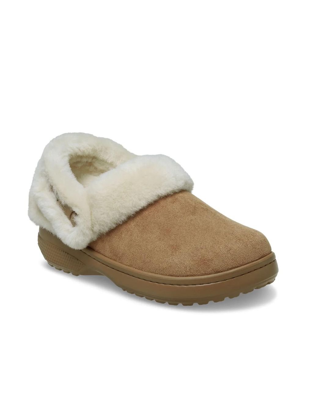 Step into cozy comfort with the Crocs Classic Unforgettable clog. Featuring a soft vegan suede upper, plush faux fur lining, and a cushioned footbed, these slip-ons offer warmth and support. The pivoting slingback strap ensures a secure fit for all-day wear with included Jibbitz holes for personalization. Color: brown