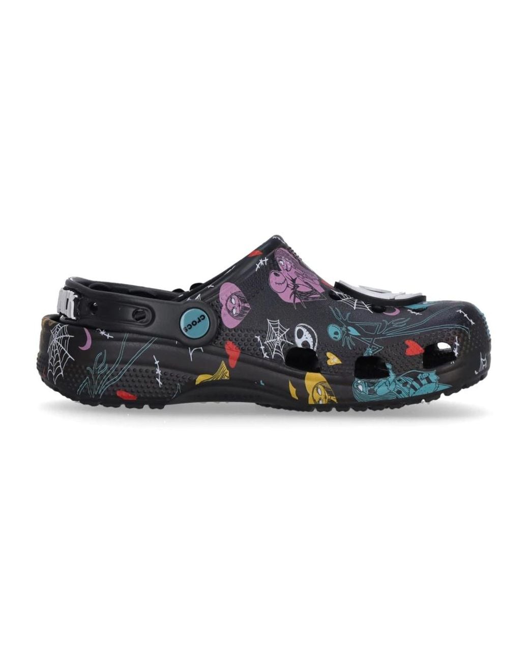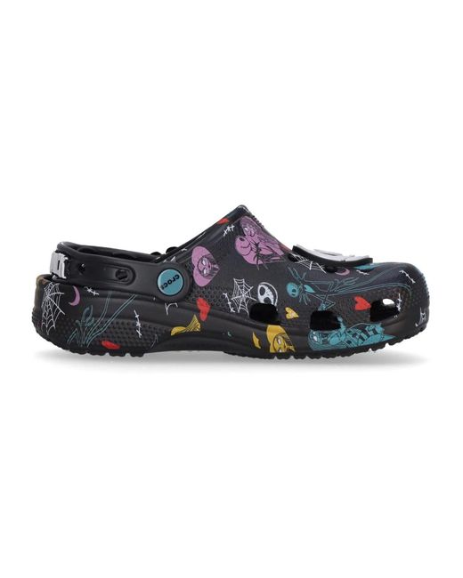Crocs Classic Clog updated with a limited-edition Disney Tim Burton's The Nightmare Before Christmas all-over print. Features two oversized Jack and Sally Jibbitz™ charms and lightweight, water-friendly comfort for everyday wear. Key attributes: Nightmare Multi | Croslite | Incredibly lightweight | Water-friendly and buoyant | Ventilation ports for breathability and debris release | Easy to clean and quick to dry | Pivoting/swivel heel strap for a more secure fit | Customizable with Jibbitz™ charms | Includes two oversized Jibbitz™ charms (Jack and Sally) | All-over illustrated Nightmare Before Christmas graphics | Oversized character Jibbitz™ charms attached to upper | Composition & care: Croslite compound | Wipe or rinse with soap and water; air dry. Color: blue