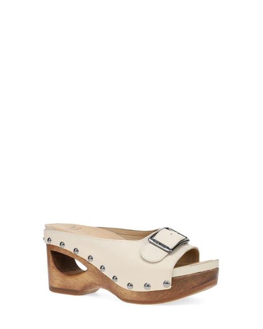 A geometric cutout centers the woodgrain wedge heel on a Brazilian-made slide sandal rendered in supple leather and trimmed with glossy midsole studs. A cushioned footbed with built-in arch support provide optimal comfort. Color: multicolor