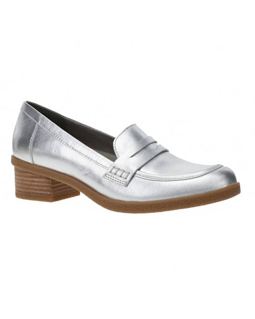 A preppy yet feminine take on the classic loafer.Enhance your closet with the Danica Chunky Loafer by Dansko, presenting a stylish balance between casual and dressy looks in a stunning silver. This women's loafer features a durable waterproof leather upper, treated nubuck for stain resistance, and a luxurious lining combining leather, textile, and Dri-Lex Eco for top-tier moisture and odor control. Experience unmatched comfort with a removable molded PU footbed equipped with Dansko Natural Arc Color: white
