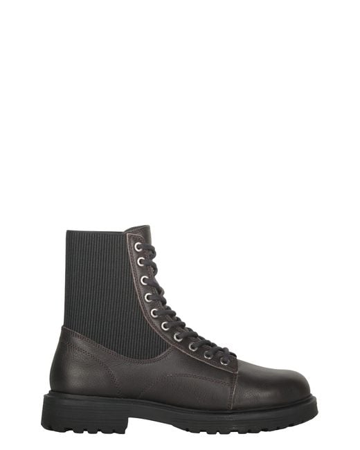 High boot for men in brown leather with lace closure. it features a sturdy sole that offers resistance and comfort. the design is characterized by sharp lines and an elegant profile making it suitable for various occasions. the leather craftsmanship ensures durability and style while the padded collar provides ankle support. perfect for tackling winter days with a touch of fashion. 70% calf le, 30% polyester, 100% rubberComposition: 70% % Calf Le, 30% % Polyester, 100% % Rubber Color: black
