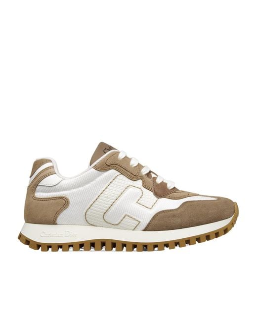 La sneaker C est Dior signe une cr ation moderne et audacieuse L association du cuir de veau couleur noisette du veau velours couleur noisette et de la r sille technique blanche est sublim e par les lettres C et D en coton brod sur les c t s La semelle bicolore ultral g re sign e Christian Dior accentue son allure sportswear tout en garantissant un confort optimal Cette sneaker apportera une touche actuelle tous les looks d contract s Color: white