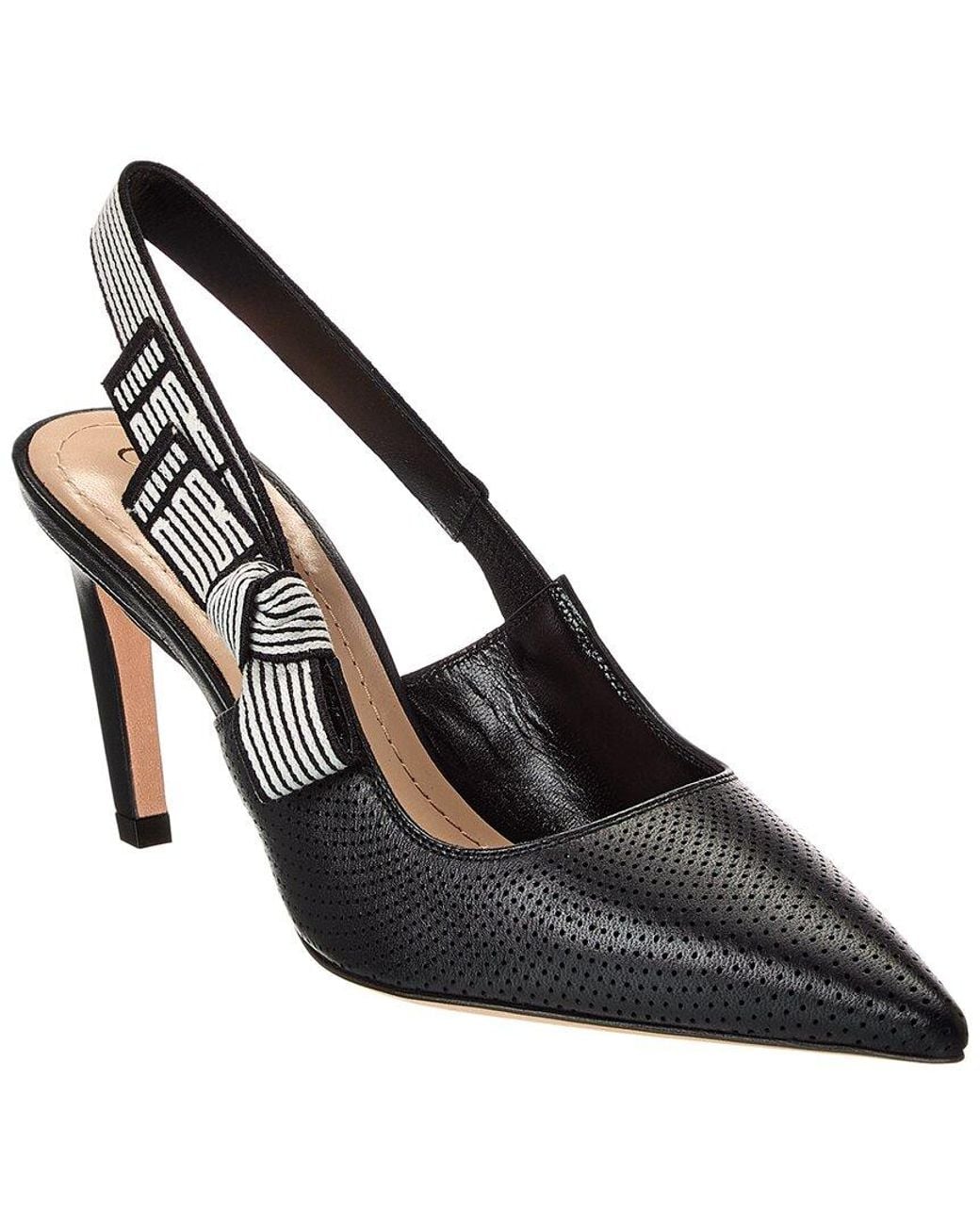 About The Product: Perforated Leather Slingback Pump With Striped Bow Detail Color/Pattern: Black Elastic Slingback Strap With Knotted Bow Lightly Padded Leather Insole Smooth Leather Sole Pointed Toe Silhouette Perforated Leather Made In Italy Size & Fit: 3.5 Inch Heel Size Selections Are European. For Us Conversions, Please Reference Size Chart All Measurements Are Approximate And Were Taken From A Size 37; Slight Variations May Occur About The Brand: Elegant And Timeless French Luxury. Please Note: Our Products Are 100% Genuine. In Some Cases We Purchase Merchandise From Trusted Independent Suppliers And Not Directly From The Brand Owner. In All Cases We Stand By The Authenticity Of Every Product Sold On Our Site.