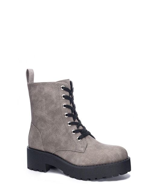 - Mazzy Boot Leather Block Heel Combat Khd590