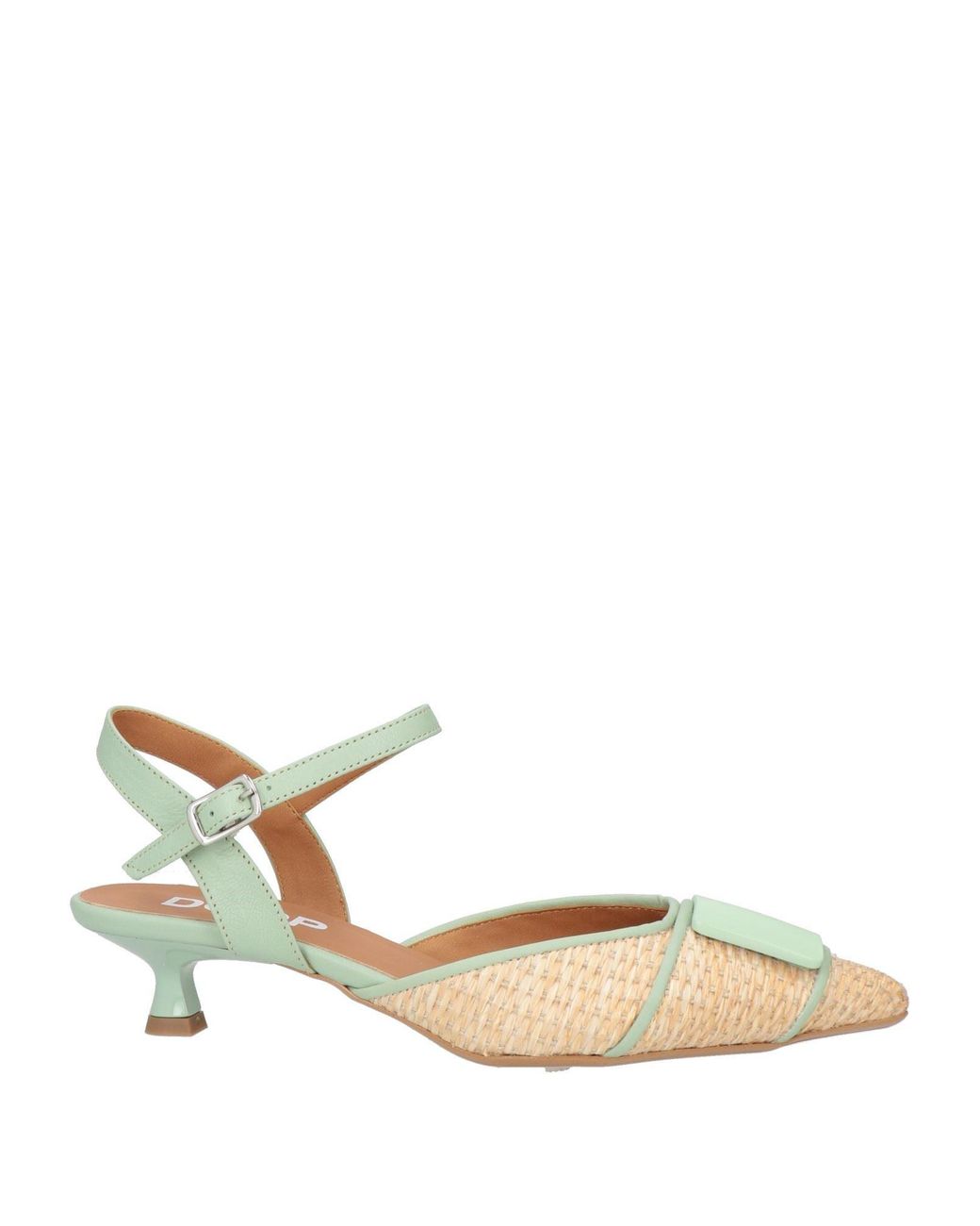 Pumps, leather, raffia, two-tone, embellished, leather lining, buckle fastening, pointed toe, spool heel, rubber sole, contains non-textile parts of animal origin , Color: Light green , Size: 9